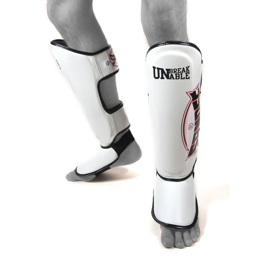 Raised knee area, additional contoured shin ridge, and full foot cover for ultimate shock absorption and additional safety in sparring.