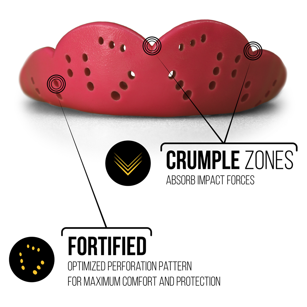 The Aero is made from a high-tech thermoplastic material that is 30% stronger and has 8x greater tensile strength than conventional mouthguard materials. This means that no matter how intense things get during game time, your SISU Aero has your back and your teeth.